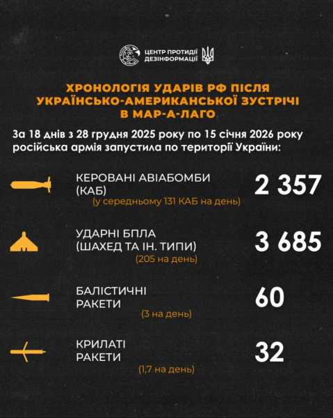 В інфографіці Центру показано, скільки з того моменту рф запустила по Україні засобів ураження, що є свідченням того, хто насправді не хоче миру.